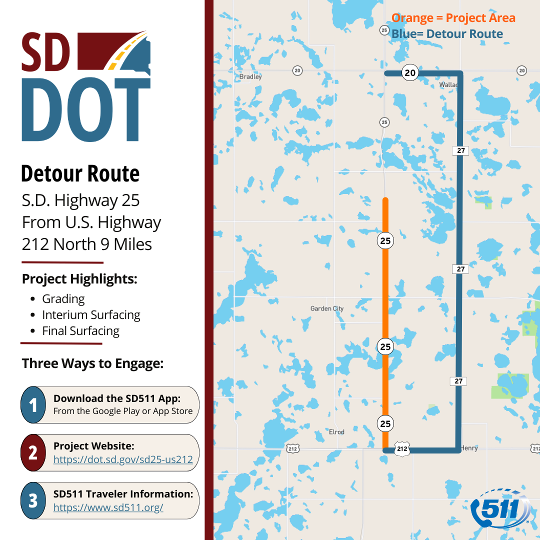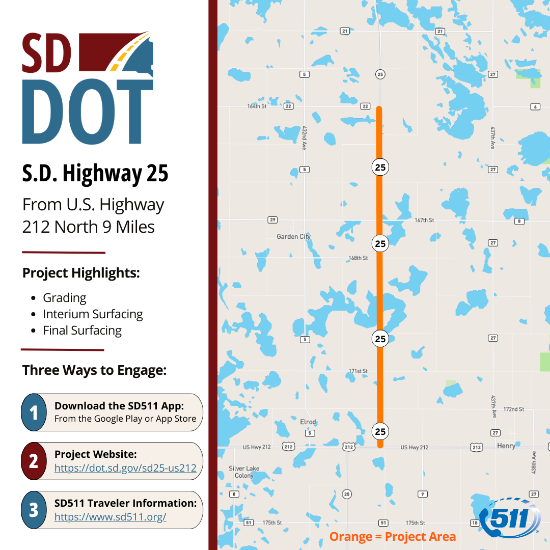S.D. Highway 25 from U.S. Highway 212 North 9 Miles