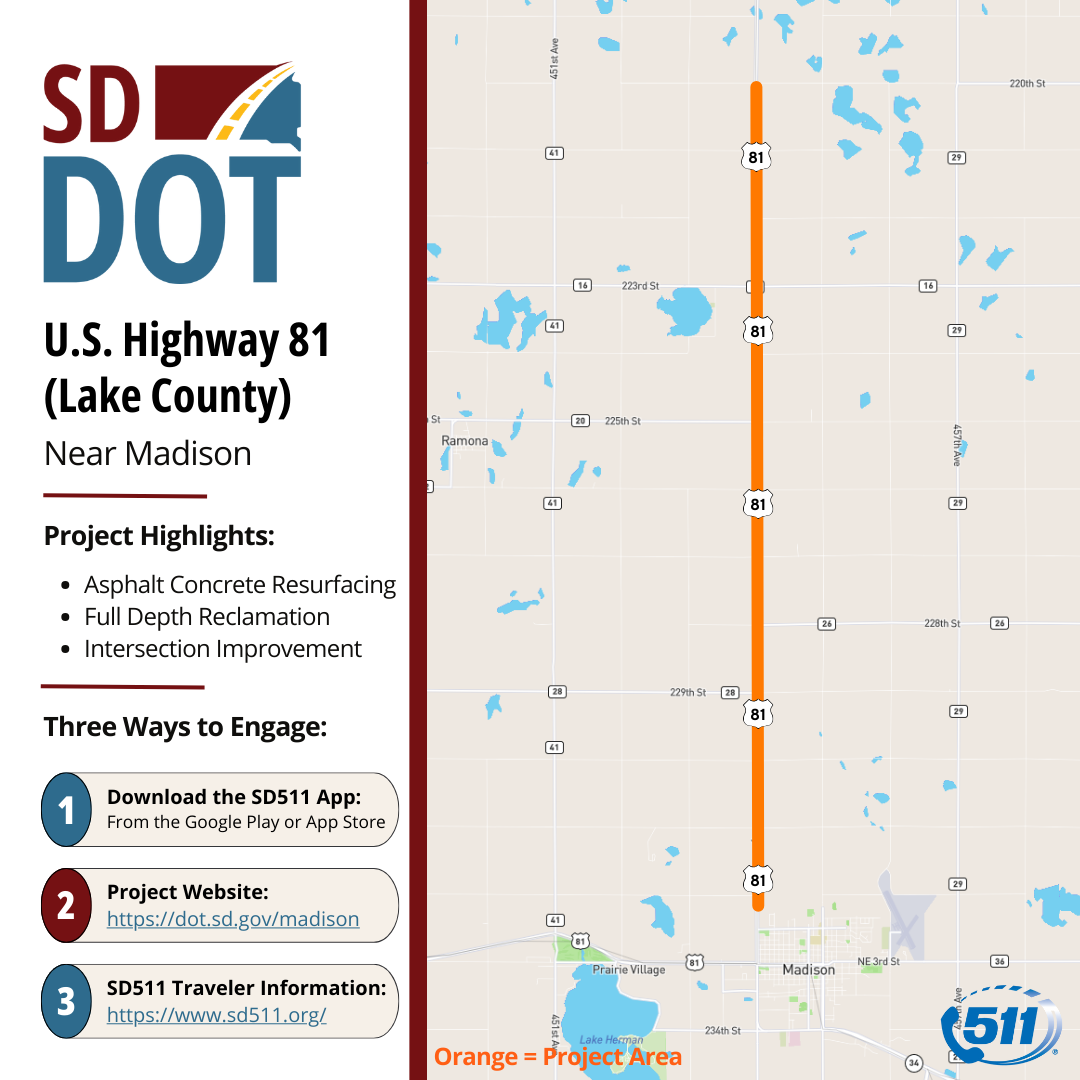 U.S. Highway 81 - From N of NW 9th Street in Madison to the Lake/Kingsbury/Brookings County Line